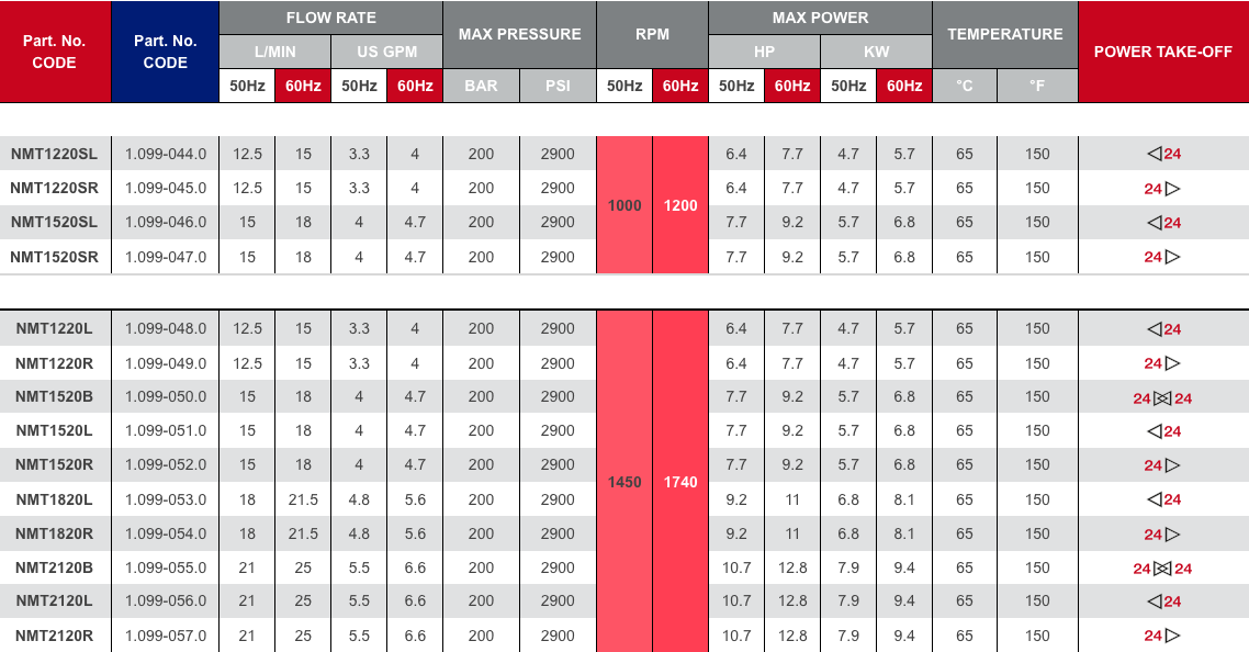 Hawk NMT pístová čerpadla jsou vlajkovým modelem značky Hawk pro 200 barů. Vynikají všestranností, díky čemuž jsou ideální pro použití v profesionálních vysokotlakých čističích i automyčkách. Nabízejí průtok až 25 l/min při maximálním pracovním tlaku 200 barů. Mezi nejznámější modely této série patří NMT1220R, NMT1520R, NMT1820R a NMT2120R.
