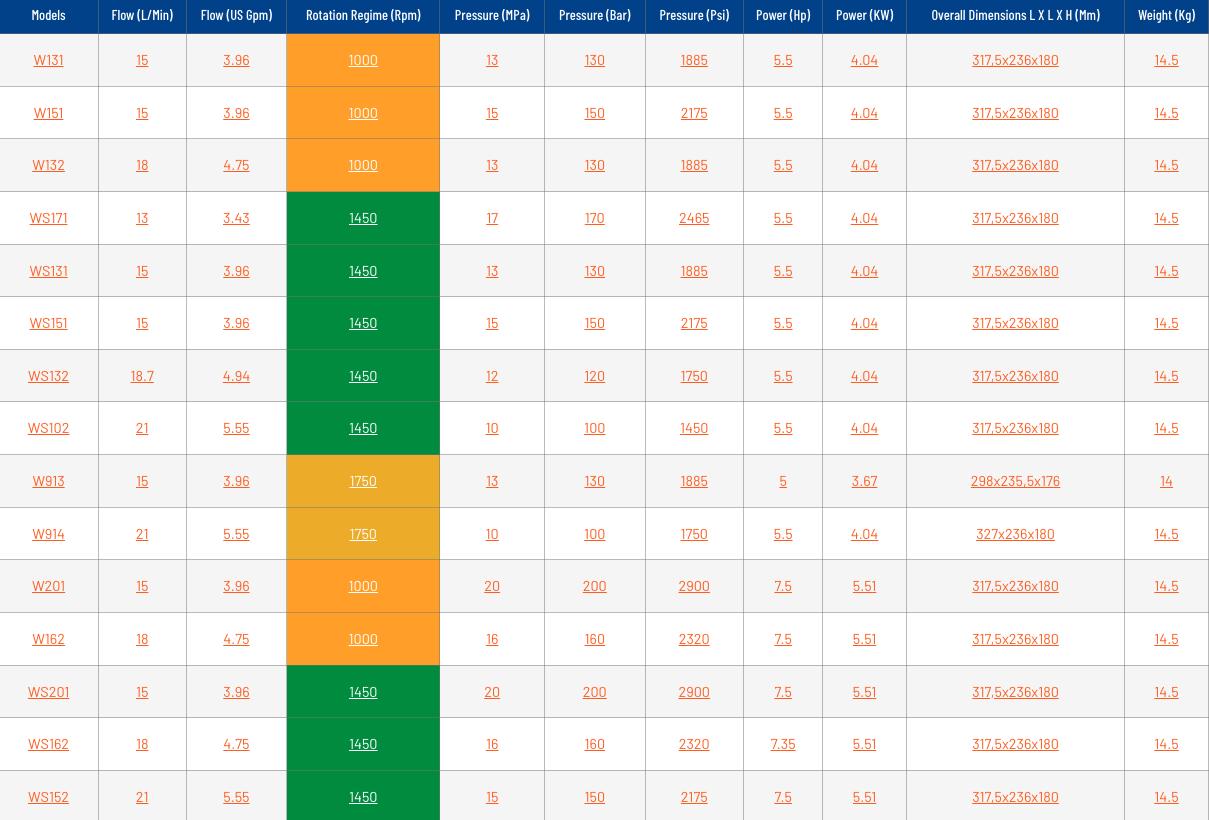 Pístová čerpadla Interpump 47 nabízejí průtok až 21 l/min a maximální pracovní tlak 250 barů. Série zahrnuje různé modely s odlišnými kombinacemi otáček, průtoku a tlaku, což umožňuje jejich přizpůsobení různým aplikacím. Díky svým výkonnostním parametrům jsou ideální pro profesionální vysokotlaké čističe a automyčky.