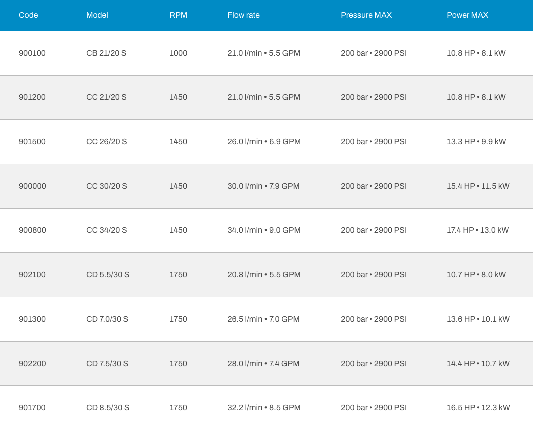 Pístová čerpadla Udor série C jsou ideální pro široké spektrum aplikací. S maximálním tlakem až 200 bar a průtokem vody až do 70 l/min poskytují vynikající výkon pro náročné úkoly. Jsou vhodné pro použití při průmyslových mytích, pro městské čištění nebo v hasičských a rozprašovacích systémech. Vysoká účinnost a spolehlivost dělají tato čerpadla skvělou volbou pro profesionální aplikace.