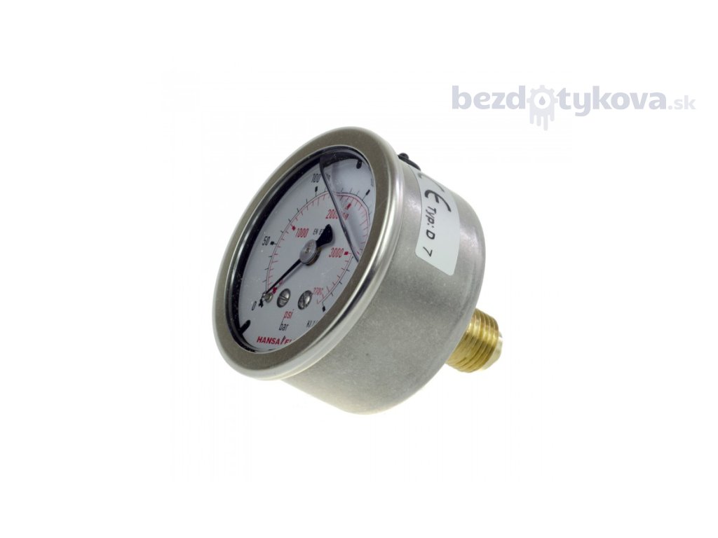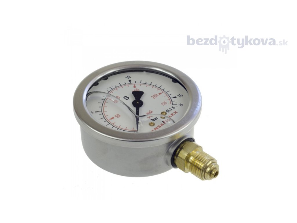 Glycerinový manometr 0-160bar v kovovém obalu. Průměr 63 mm. Zadní nebo spodní připojení G1/4''.
